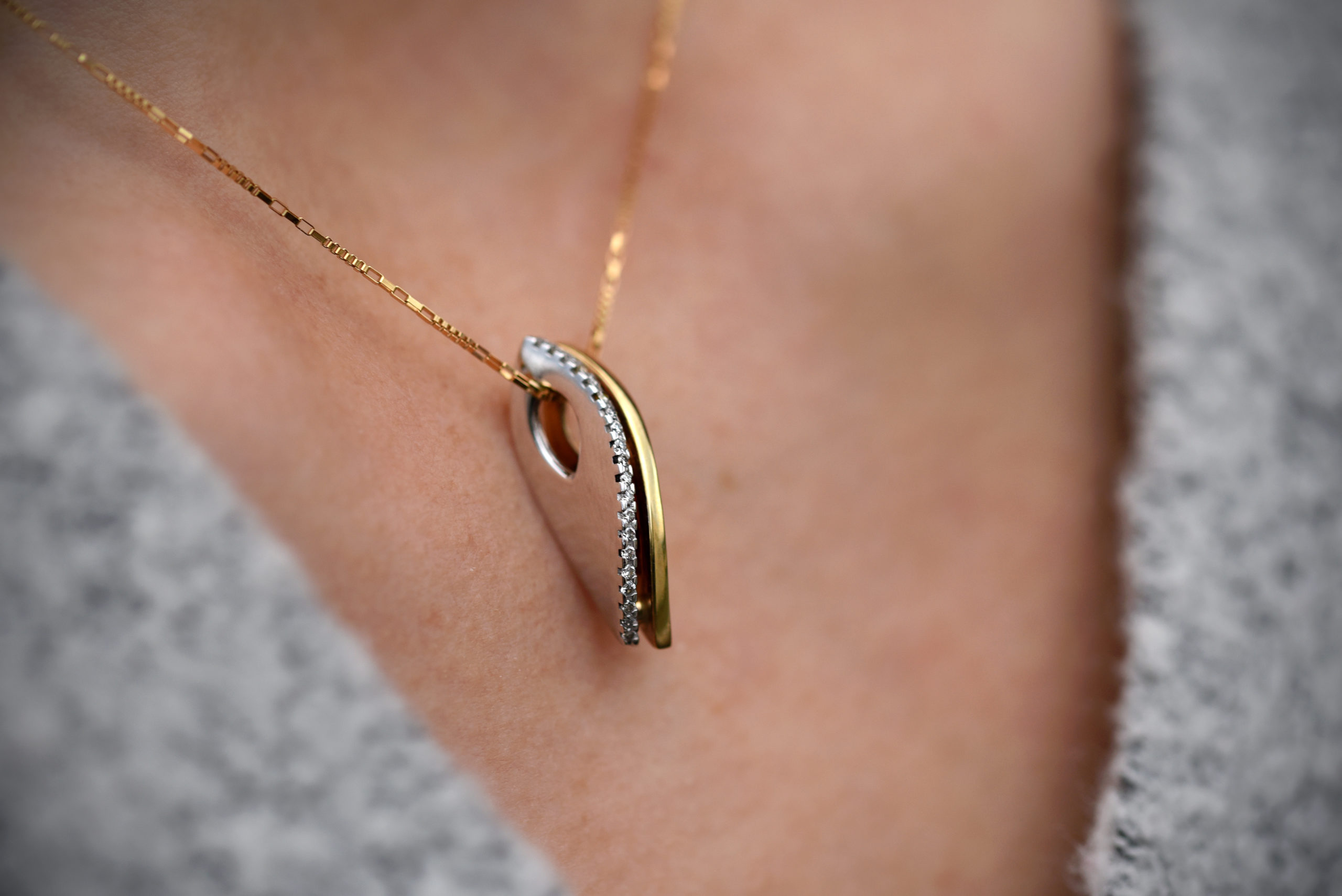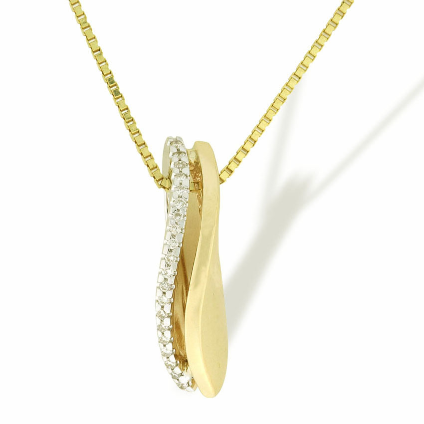 Anheng i gult og hvitt gull med 0,12 carat tw/si. Ca. 3,6 gram. Lengde: 2,2 cm. (Prisen er uten kjede). På lager. Har ring og ørepynt i samme serie.
