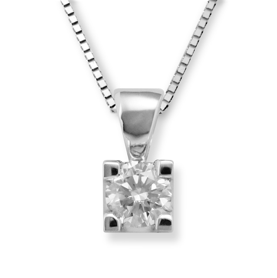 Lykke enstens diamantanheng 0,40 ct tw/si. Fattet med 4 kraftige klør. Diamanten har selvfølgelig den høye slipegraden som Gullshoppens Diamanter er kjent for. (Prisen er uten kjede). På lager.