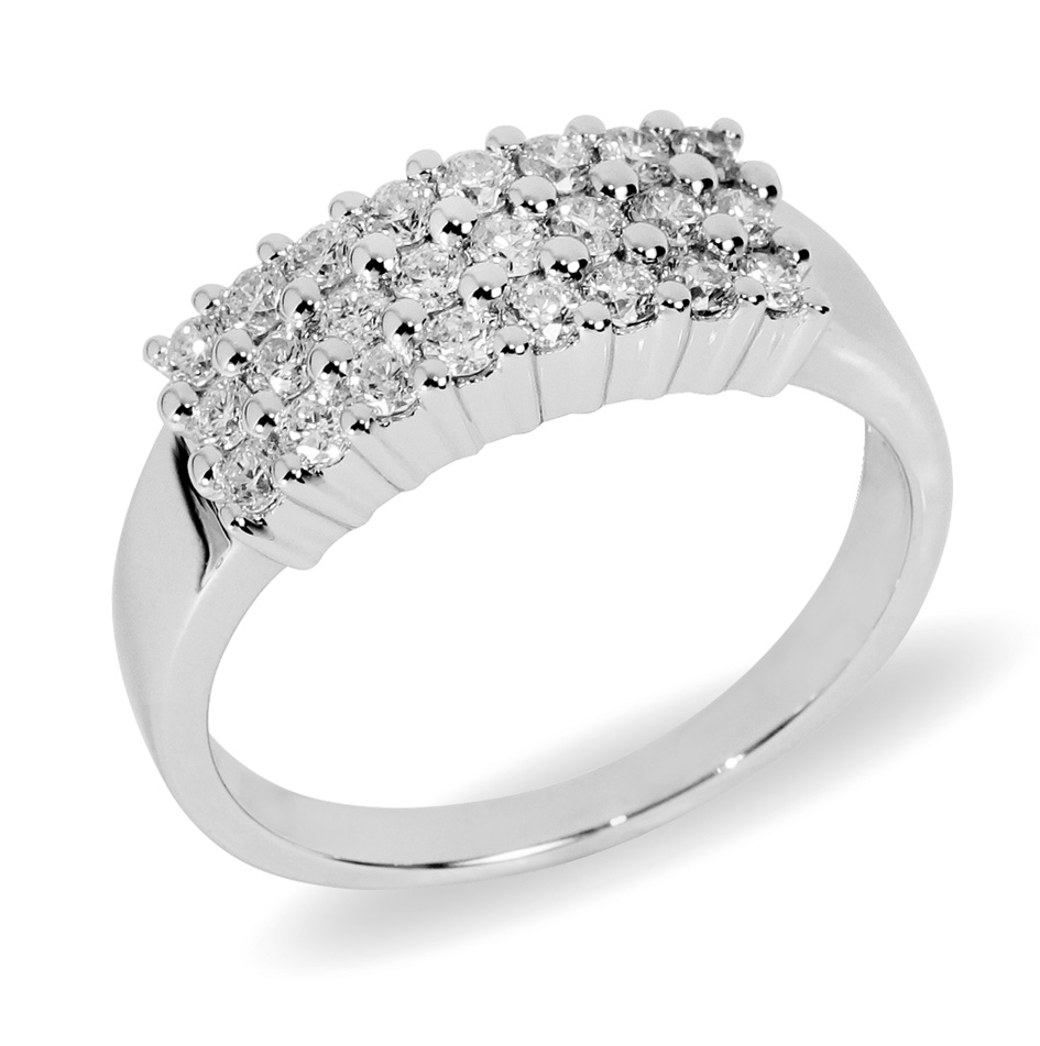 Meget pen rekkering i 14 karat hvitt gull med 24 diamanter i tre rader 3 x 8 stk. diamanter – totalt 0,60 carat tw/si. Flott ring i meget solid kvalitet. Største bredde på ringen er ca. 6,2mm. Str. 54 på lager. Leveringstid 1-3 dager. Andre størrelser ca. 14 dager.