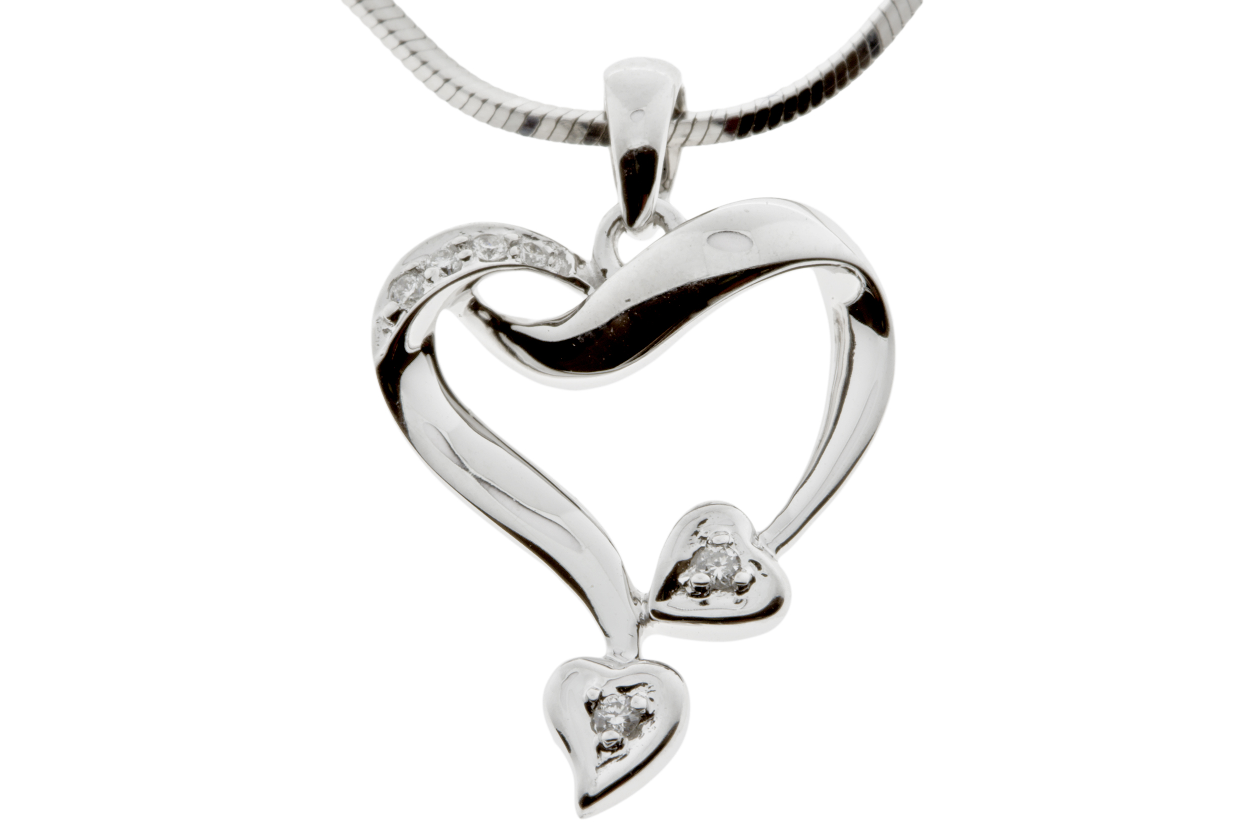Sandra hjerte i hvitt gull 0,05 carat tw/si diamanter. Høyde: 2,3 cm. Bredde 1,5 cm. (Prisen er uten kjede).